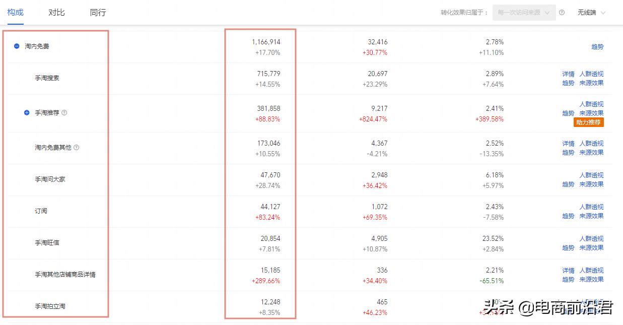 大家是不是感觉很奇怪?并且有没有仔细想过这个问题?这里给大家统一回复下:因为访客数里面他包含了付费进店人群、搜索点击进店人群以及聚划算淘抢购等活动进店人群,这也就导致了访客数远远高于我们的搜索点击人数,从侧面也反应出了这个类目下的商家参加活动引进的访客很多。从这里大家是不是也发现,其实从数据了我们能读出很多信息来的。